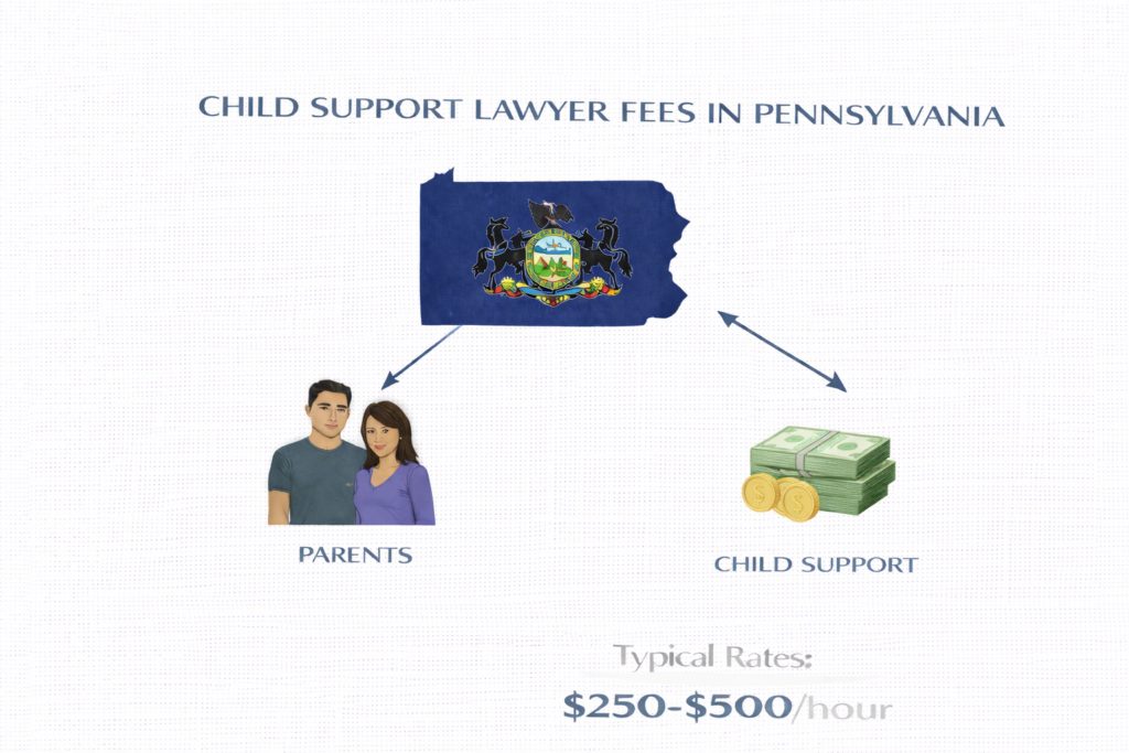 Child support lawyers in Pennsylvania typically charge $250–$425 per hour, with experienced attorneys charging $425–$700+ per hour.