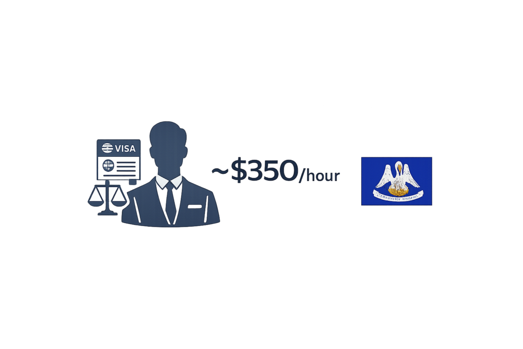 Immigration legal costs in Louisiana are generally below large coastal markets, but court-based and detention-related cases can reach national averages due to federal court complexity and limited local specialization.