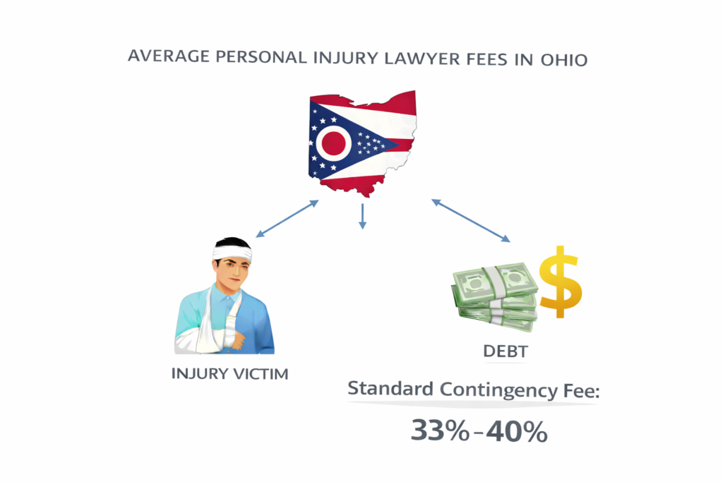 Most personal injury cases in Ohio involve no upfront attorney fees, but lawyers typically collect 30%–40% of the final settlement or verdict, plus case expenses.